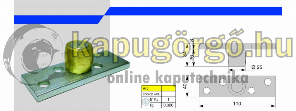 Alsó vezető görgő lemezen, függőkapu rendszerhez.