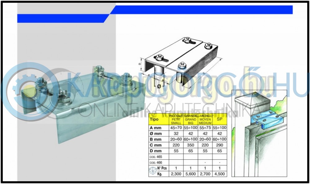 Hosszúság: 465P - 220 mm, 465G - 350 mm