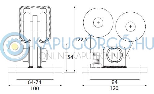 Úszókapu görgő 2140 58x66mm-es (339 vagy 339GG) sínekhez