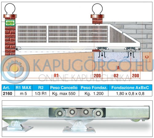 Úszókapu görgő 2160 58x66mm-es (339G vagy 339GG) sínekhez