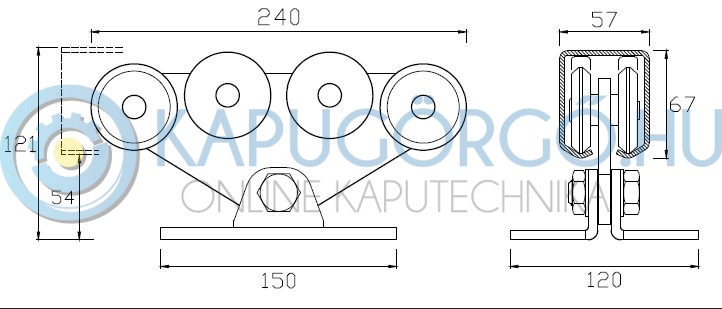 Csavarozható úszókapu görgő, 8 csapággyal 57x67mm C-sínhez