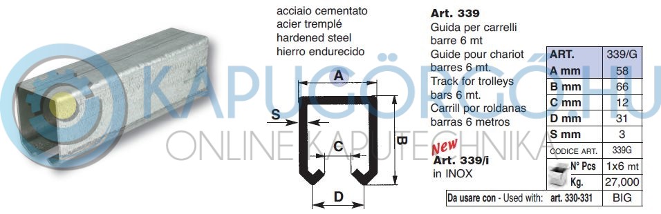 A 339G c-sín 3 és 6 méterben is megvásárolható úszókapu sín. A részletes műszaki paramétereket, illetve méreteket a képekre kattintva tekintheti meg.