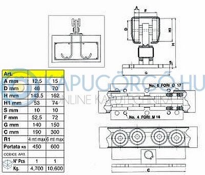 Alkalmazás: Maximum 1000 kg kapusúlyig és 12 méteres kapunyílásig ajánljuk. (Teljes kapuhossz 16,4méter)